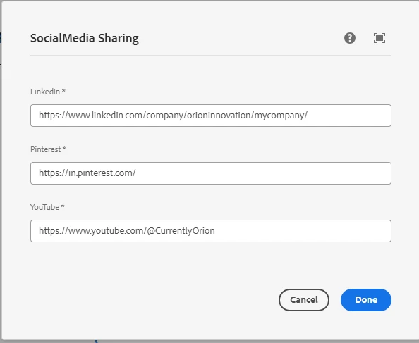 Custom Component -Configure Social Media Sharing