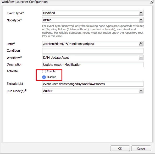 Custom DAM Update Asset workflow