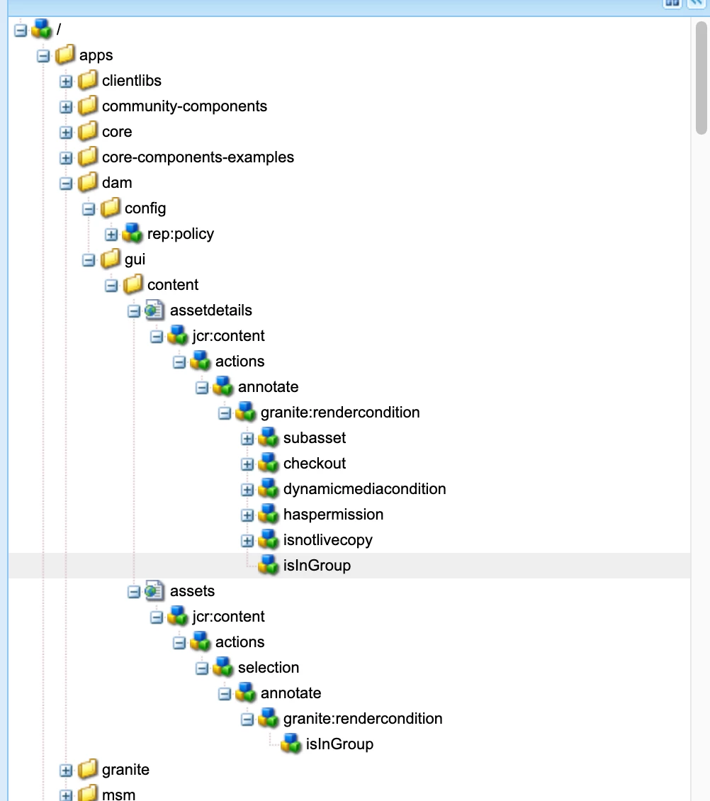 My use case is I am trying to hide the Annotate button on AEM Assets for selective user groups.
