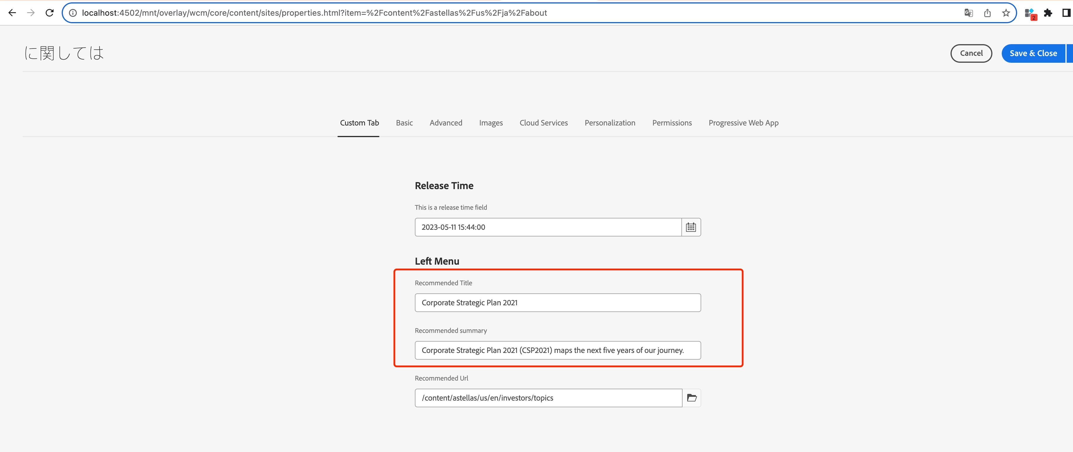 I added custom properties to the page and used them in the navigation bar, then I created a language copy and translated them, but the properties were not translated. Please tell me how to translate it.
