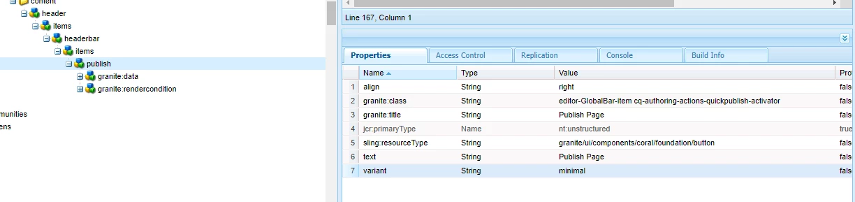 then go to the publish node and right click and select overlay node. once its overlayed under the /apps/ just go to publish node and add property align , variant and granite:class as below.