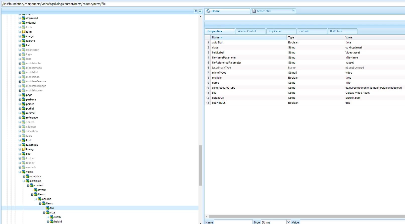 I am creating a custom video component. In cq dialog, added file upload module and droptarget. In HTML we are getting the file url with ${properties.fileNameParameterReference}