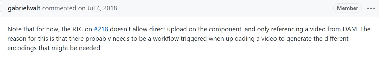So this works fine if I am dropping a video from DAM but not when direct upload. So on time of direct upload fileNameParameterReference is empty but for image there is a Image model with ${image.src} we are able to get it. is there any same way for video too??