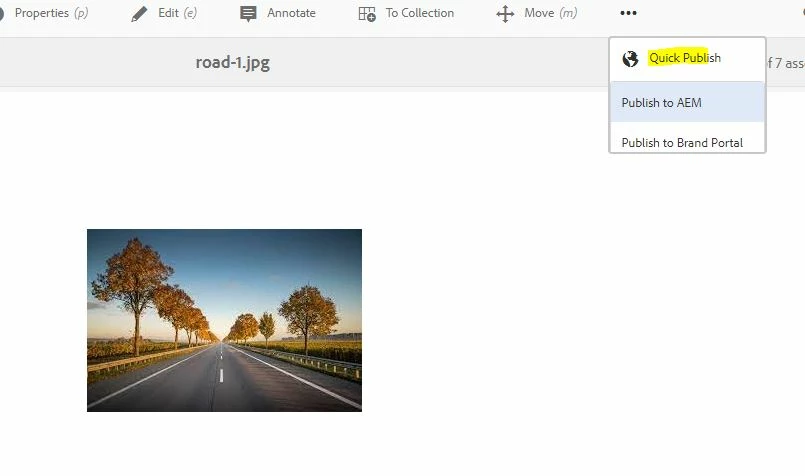 Overlay in apps /apps/dam/gui/content/assetdetails/jcr:content/actions/selection/quickpublish