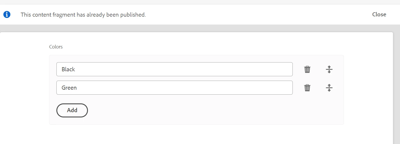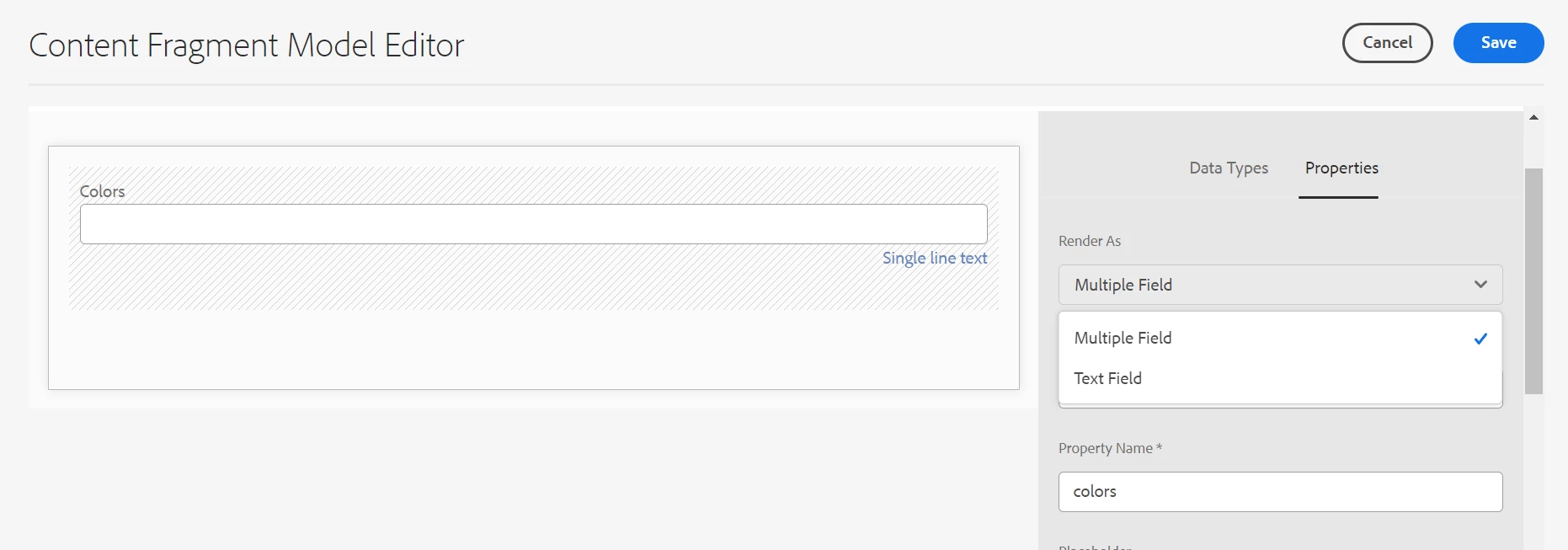 Customization on Content Fragment Model Add multifield contain 3 text field in CFM [AEM6.5]