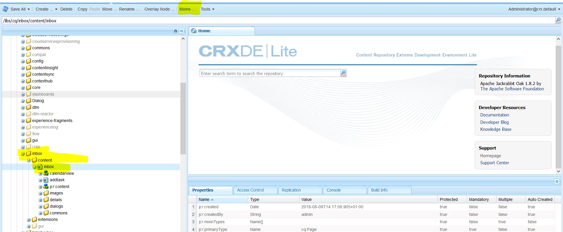 Customize / Overlay AEM 6.4 Inbox screen