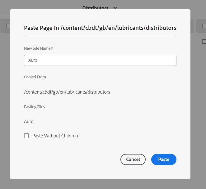 Customize 'paste' a page dialog
