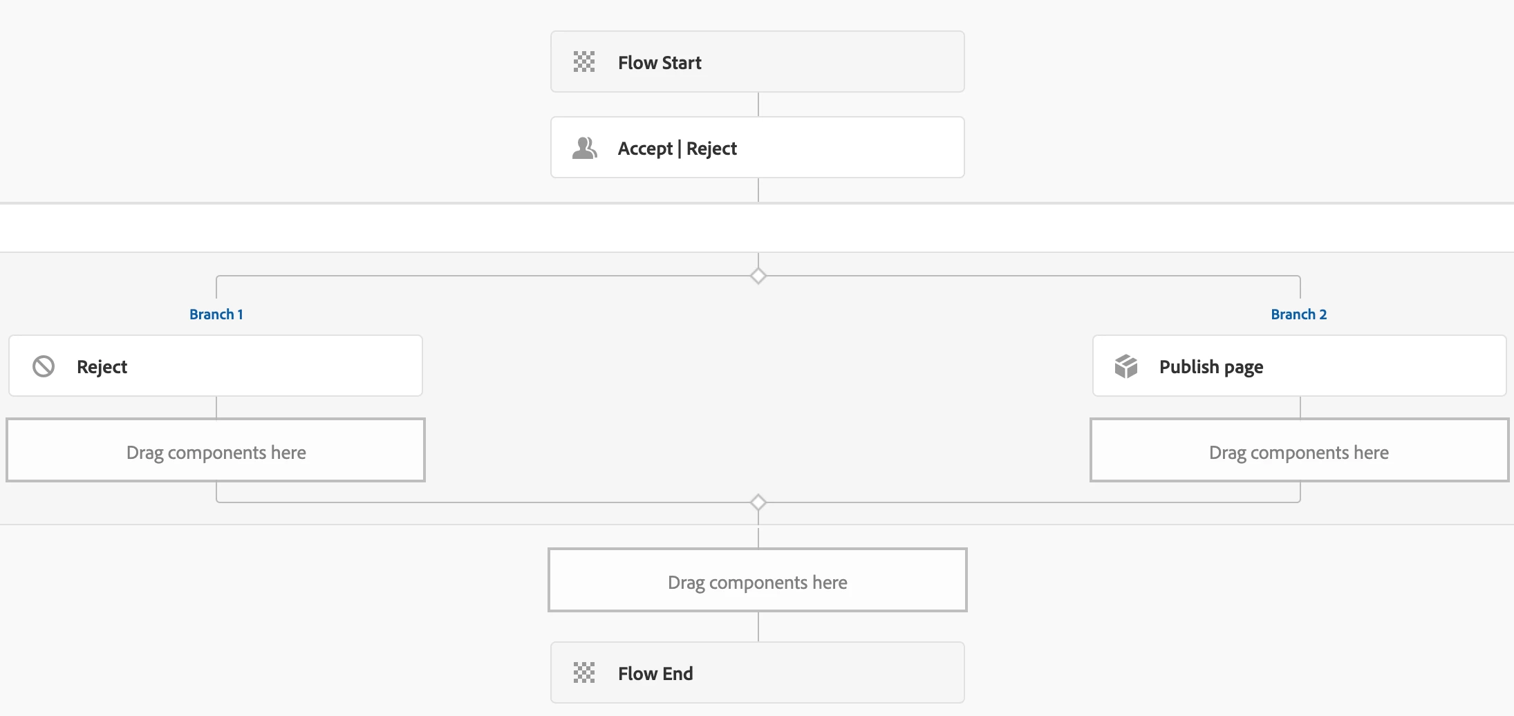 This is my workflow design. The first step is dynamic participant step where the approval will be assigned to a group dynamically. The approver can either reject or accept the changes and it will immediately publish the page (the branch 2 has a process step for activate page) if the content is accepted. I want to provide option to the approver to choose when the content should be published if they want to go for publish page option (branch 2).