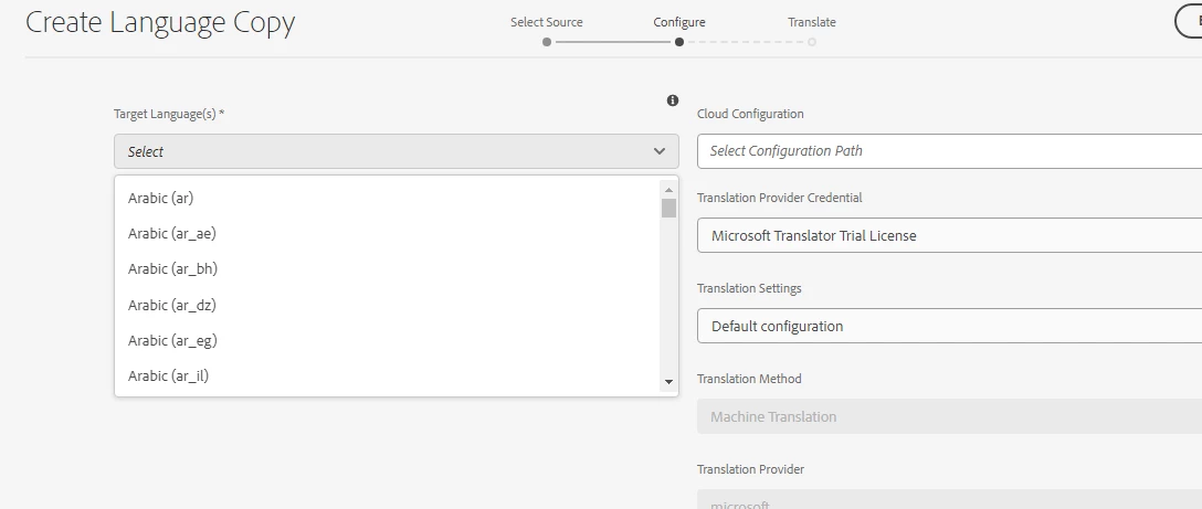 Customizing language copy's Target Language(s) country selection