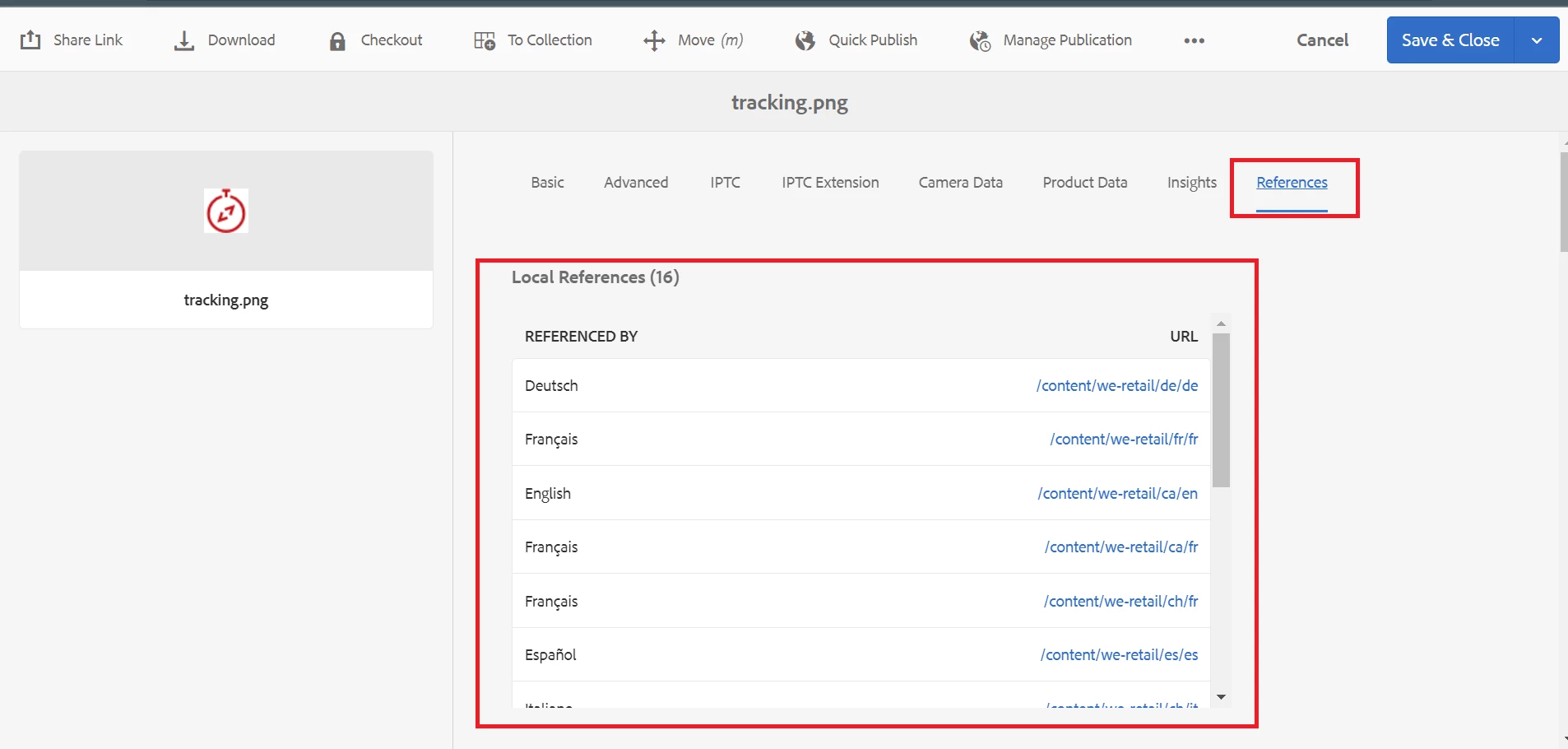 DAM Asset Usage Information