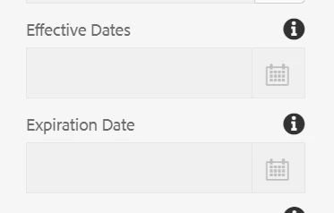 OOB Default Metadata Schema doesn't has this field named "Effective Dates". (Per 6.5.0)