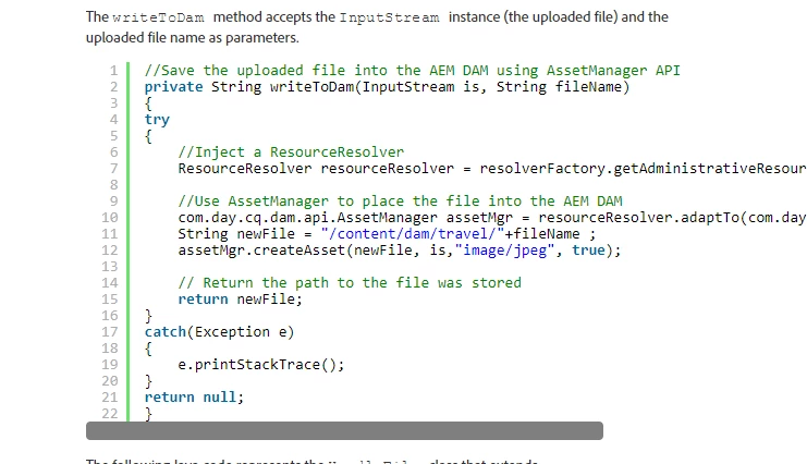 Using above article I'm able to download dropbox file into AEM DAM successfully, now I'm trying to upload a file from DAM location to Dropbox.