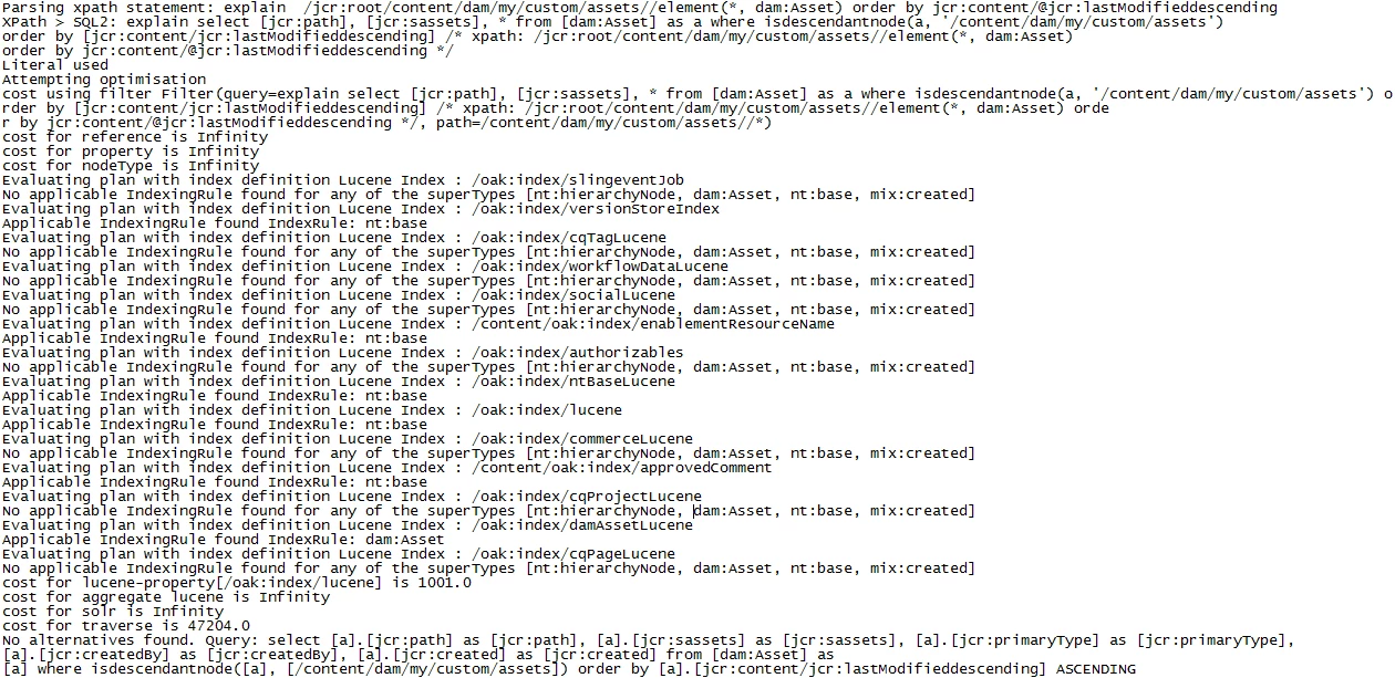 However even when i search for a simple xpath query such as below , the query is only picking the OOB /oak:index/lucene rather than the expected /oak:index/damAssetLucene .