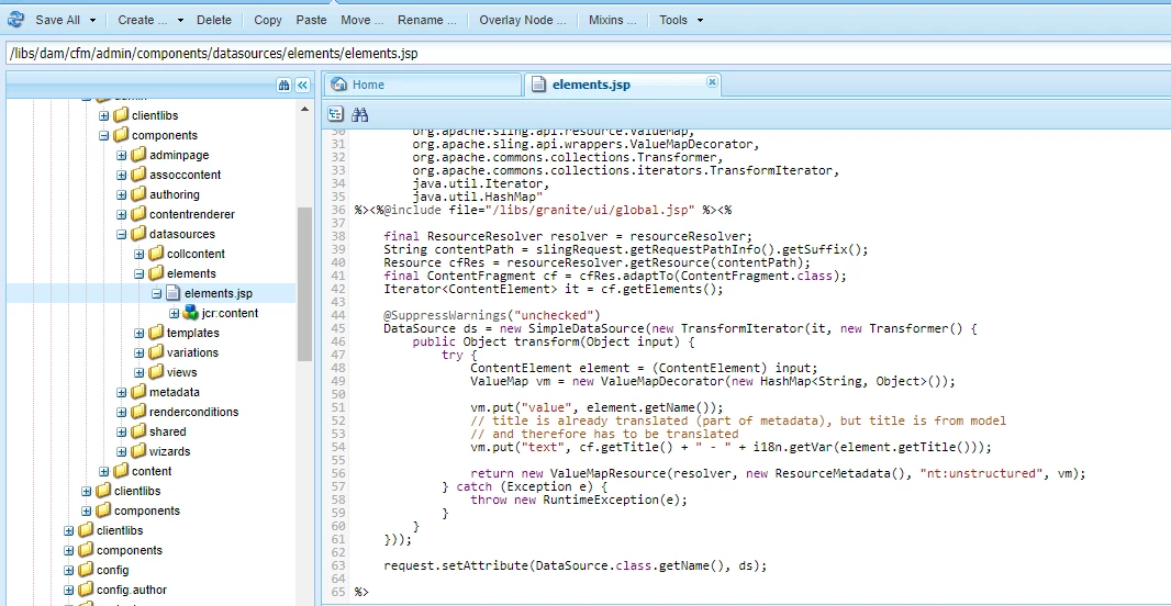 Datasource path- /libs/dam/cfm/admin/components/datasources/elements/elements.jsp