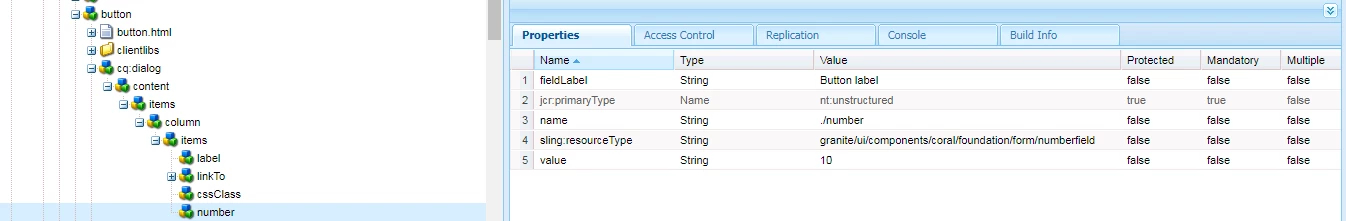 How can we achieve Coral numberfiled along with defaultProperty in AEM 6.4?