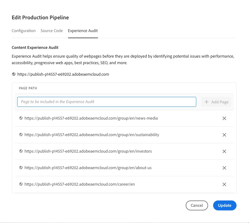 | Request for Feature Enhancement (RFE) Summary: | In the Cloud Manager > Pipelines > Exprience Audit, allow to define custom request headers. |