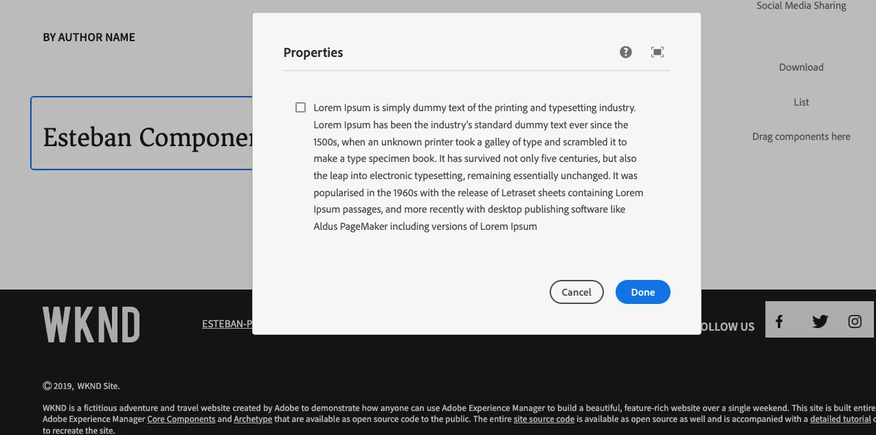 Display few lines of text next to check box icon in AEM dialog