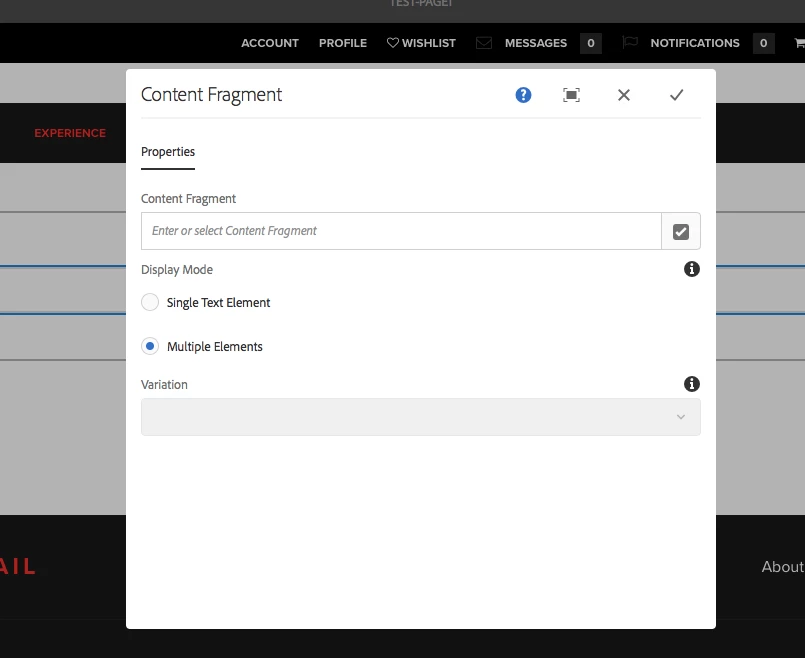 - While configuring the content fragment, I could not see the "Display Mode" option. Whereas Adobe documents and videos says, this "Display Mode" option will help author to set either "Single Element" or "Multiple Elements". By Default I am getting an option to choose only single Element. please find the attached snap shot.