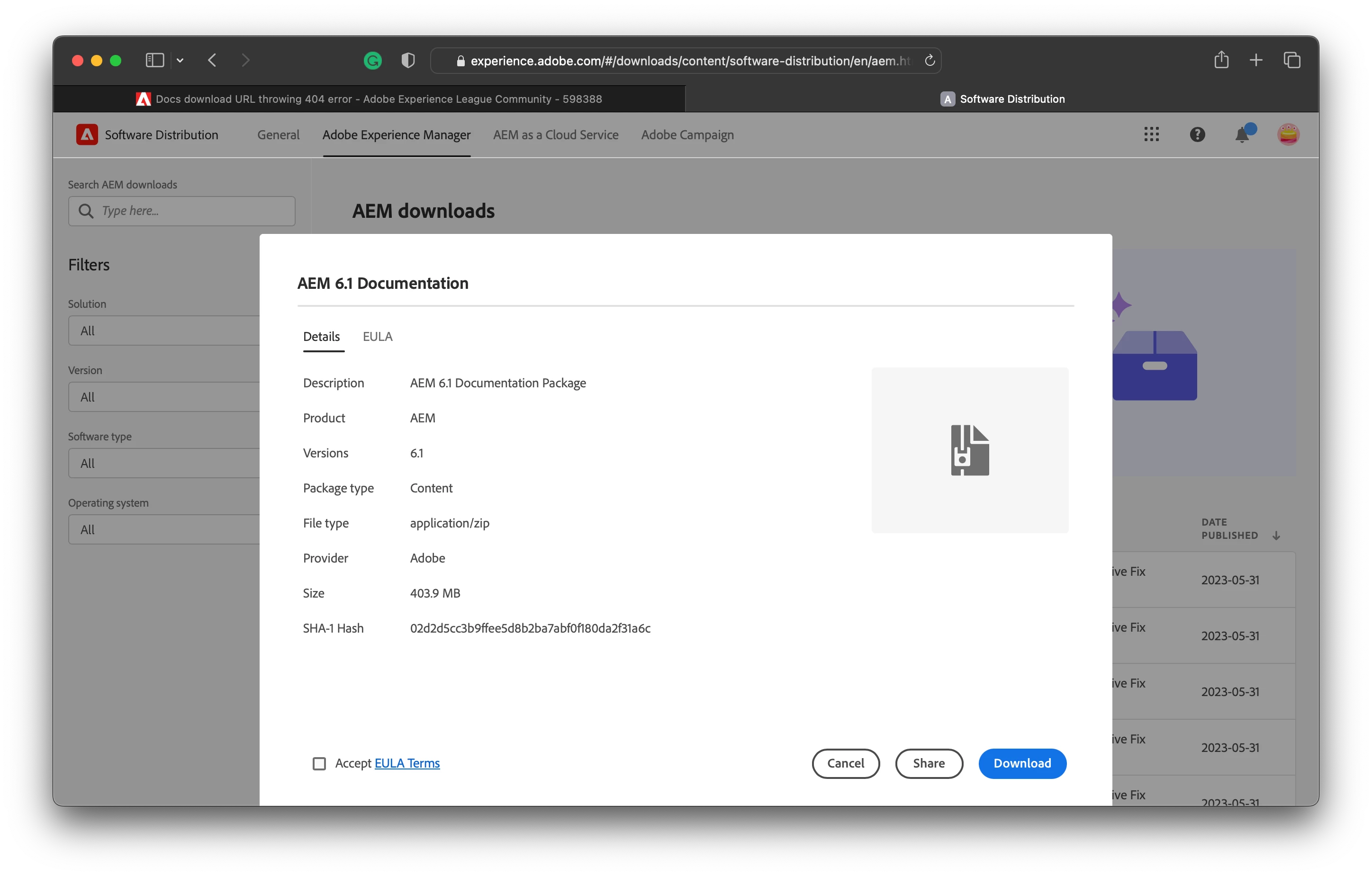 Docs download URL throwing 404 error