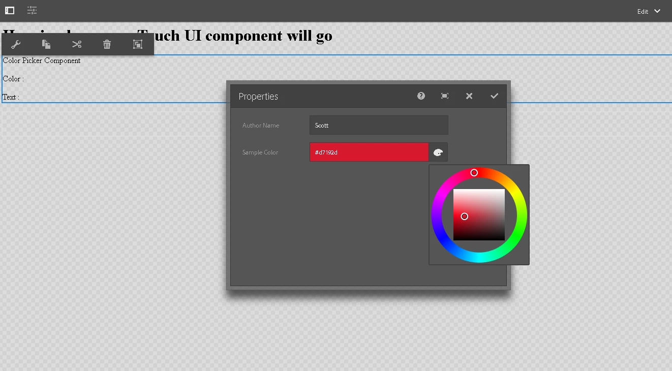 My team is having problems regarding the color picker (/libs/granite/ui/components/foundation/form/colorpicker) using AEM 6.1 in the touch ui.