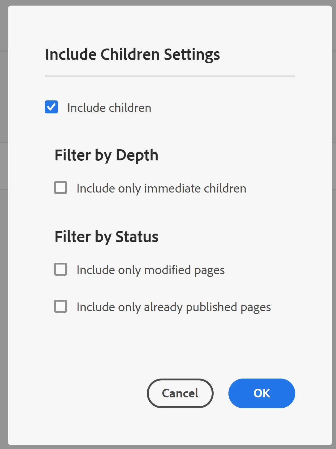 Does "Request for activation" workflow activate child pages? (AEM Cloud)