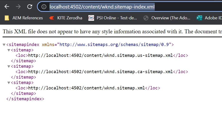 Now I need a index sitemap at root of the domain (localhost:4502/sitemap.xml) having all the market's sitemap.