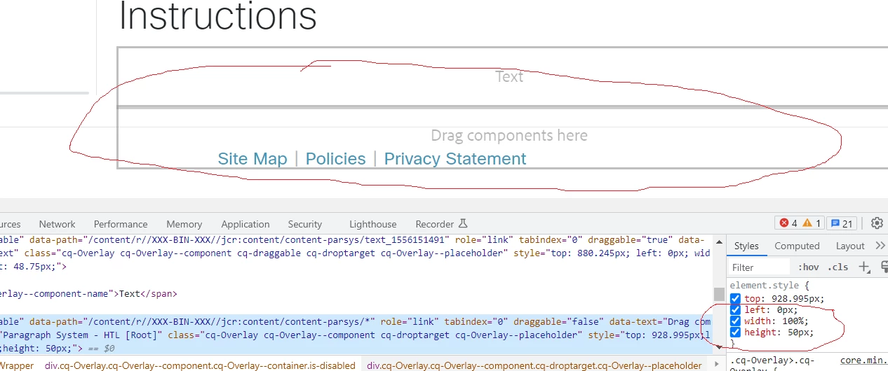 What can be reason in AEM in edit mode and i am Admin user. In my page Drag component here is coming like dot insist of whole box.