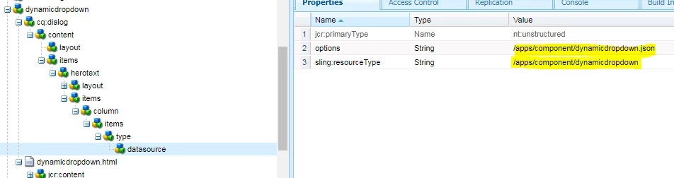 2) That multifield component will have an dropdown field and the dropdown values should be dynamic. For an instance I have this two page /content/cellular & /content/cellular/en/homepage.
