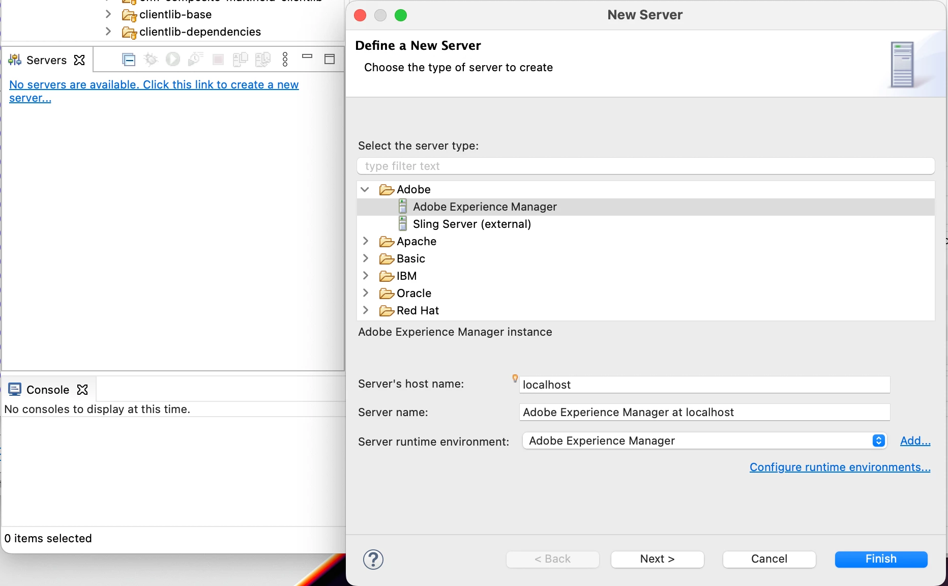 eclipse, how to connect to an existing local (cloud) server instance with developer tools?