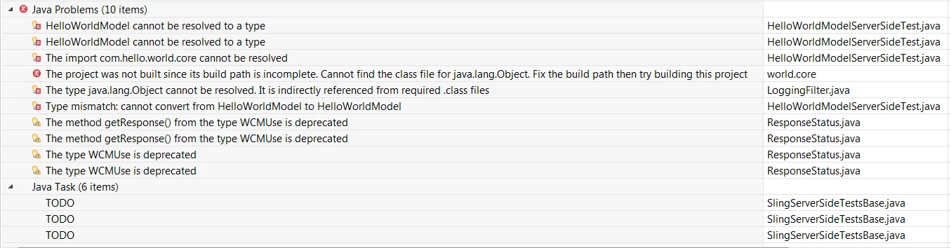 Eclipse: new AEM sample Multi-Module Project gives two types of errors