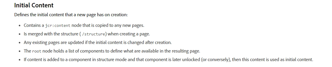 https://experienceleague.adobe.com/docs/experience-manager-65/developing/platform/templates/page-templates-editable.html?lang=en#initial-content