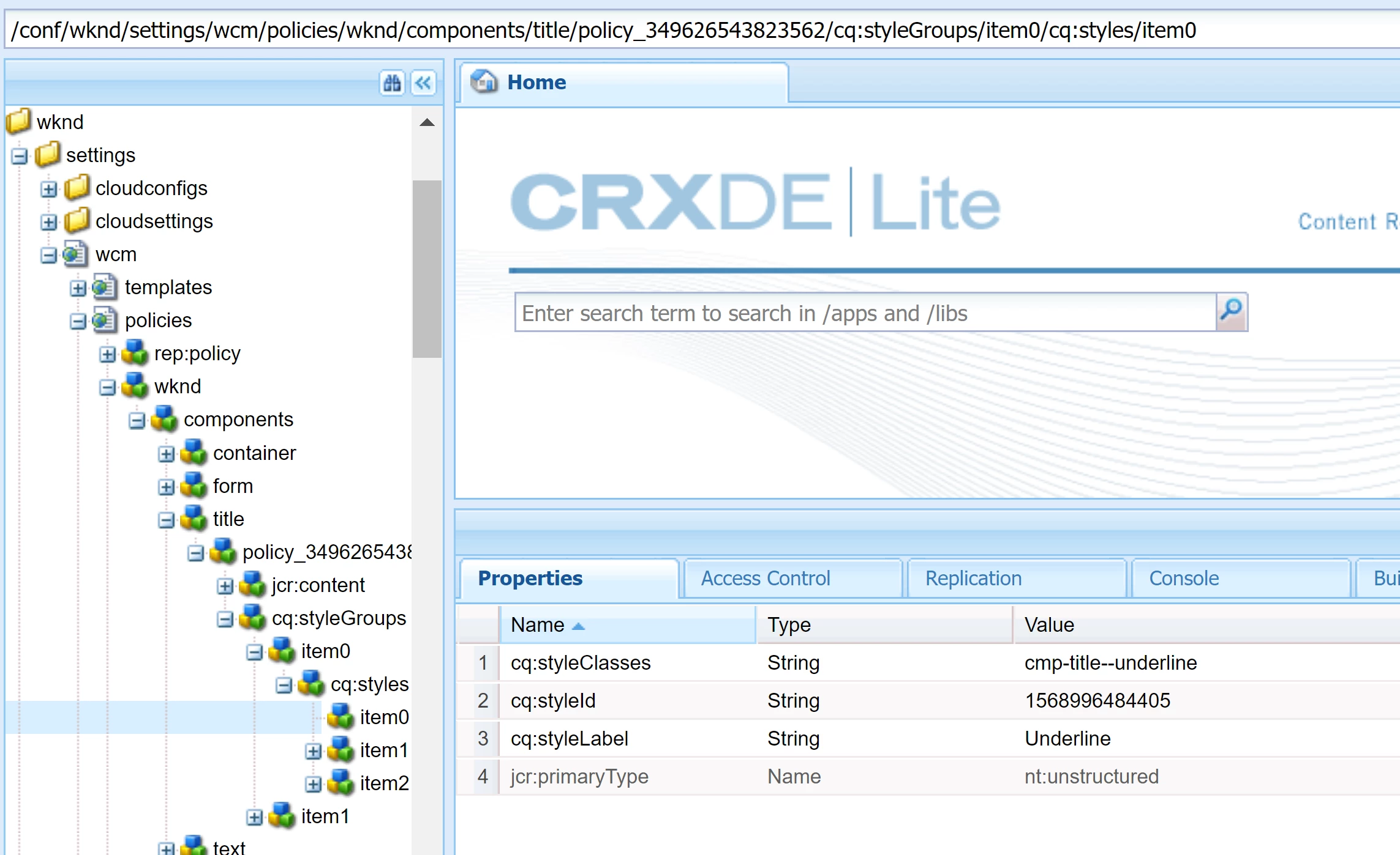 2. I tried adding an additional style in the component policy in my code repo but the changes I made did NOT show up in CRX/DE. Is it better to do it first using touch UI and then import to code repo?