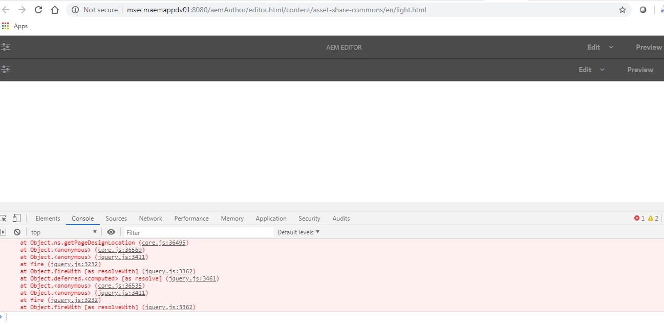 I get the below like screen on opening any of the page in author for editing. (I get error in console as shown in the pic)