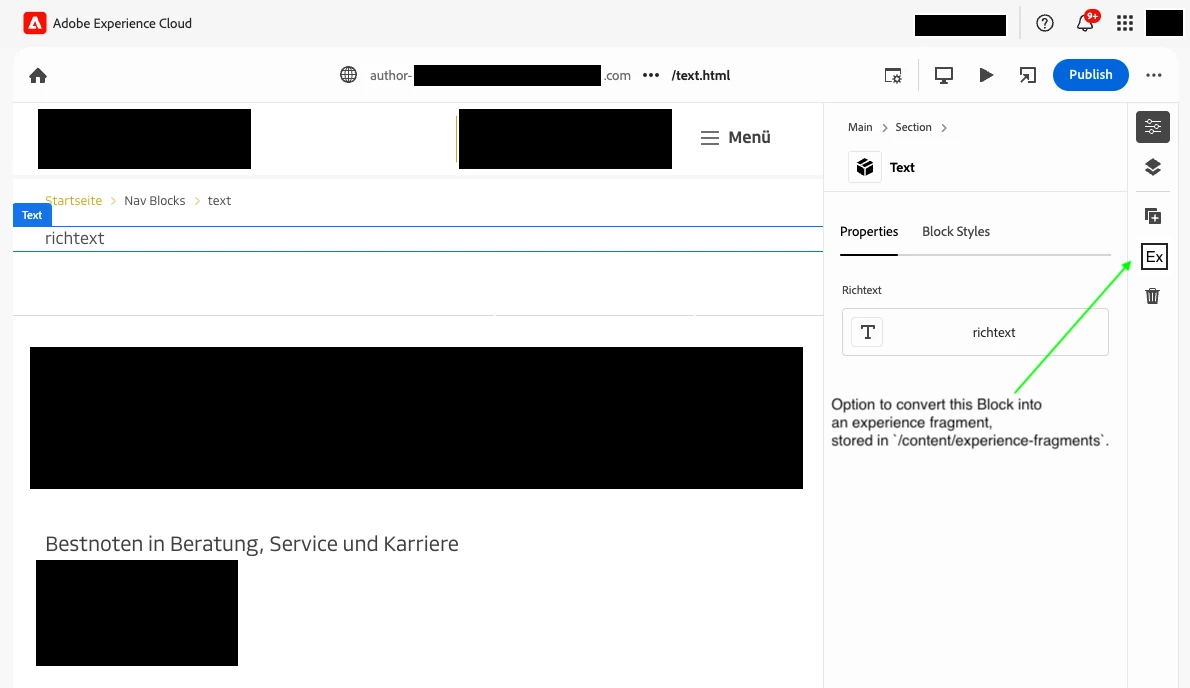 EDS - Universal Editor - Create Experience Fragment from Blocks