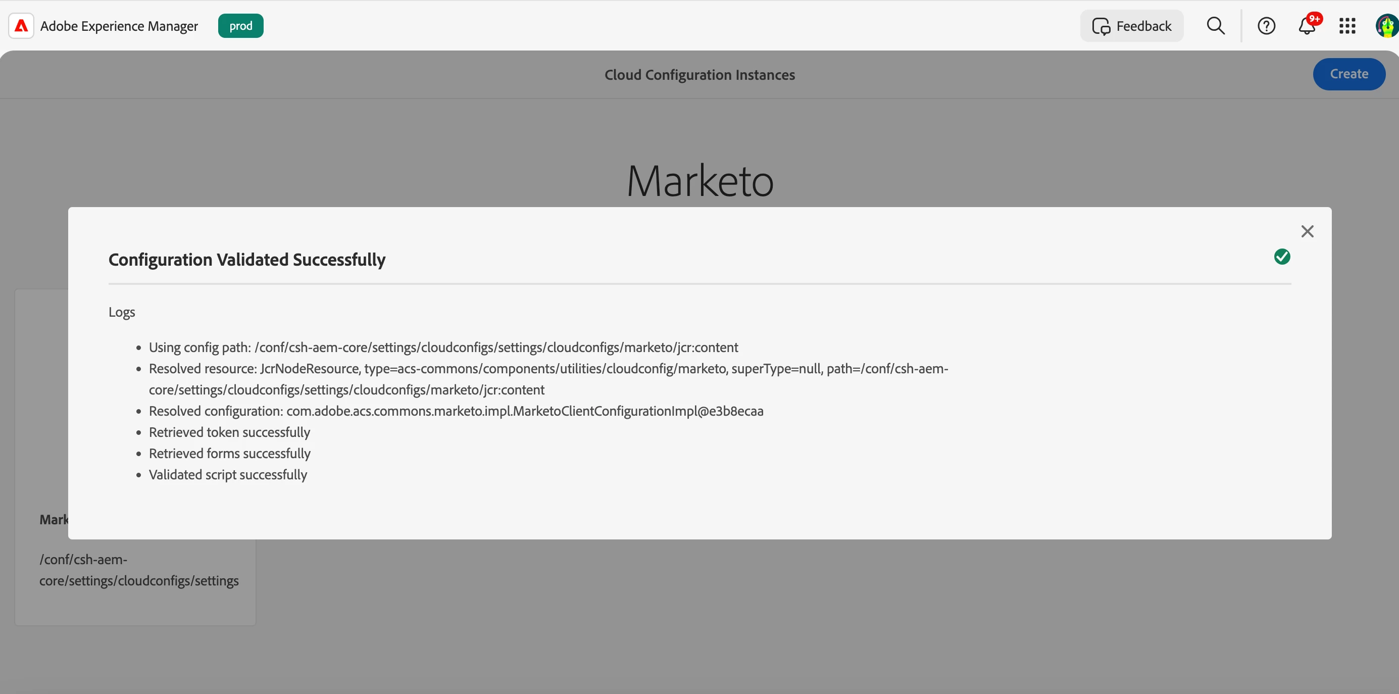 I could setup the Cloud Services -> Marketo integration piece fine. See the Configuration got validated successfully: