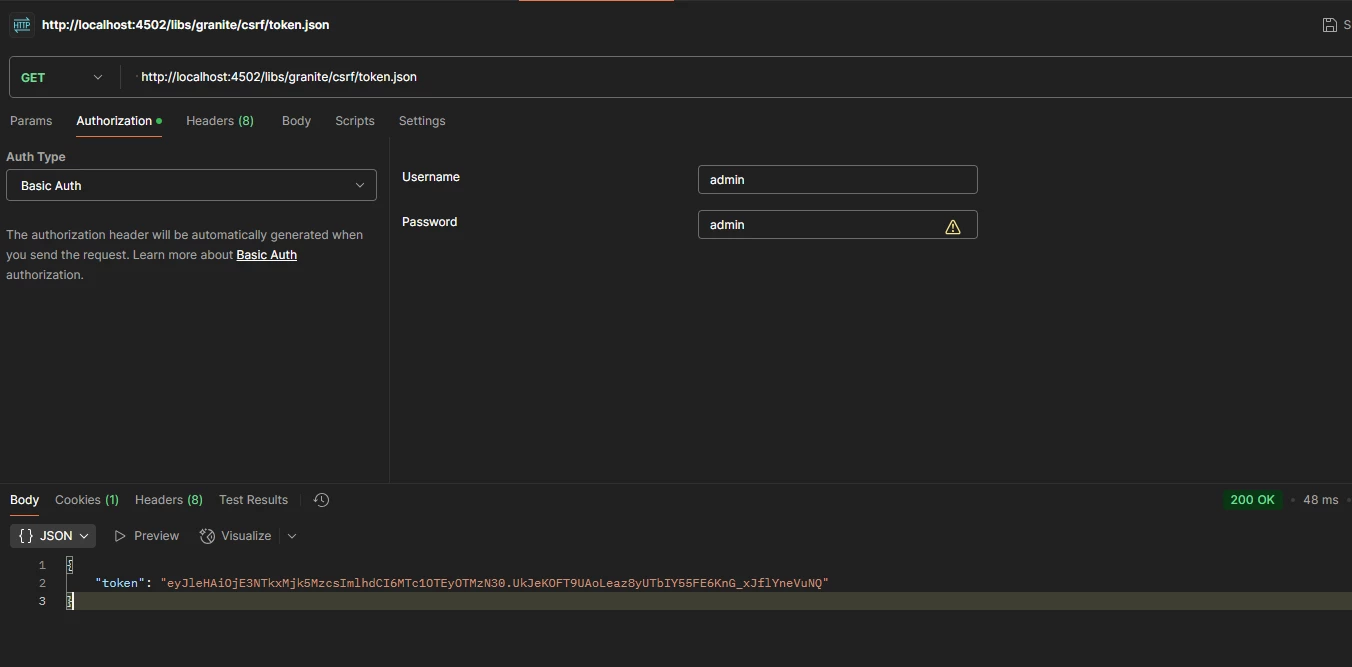 - When I visit http://localhost:4502/libs/granite/csrf/token.json, I can see the value of token.json