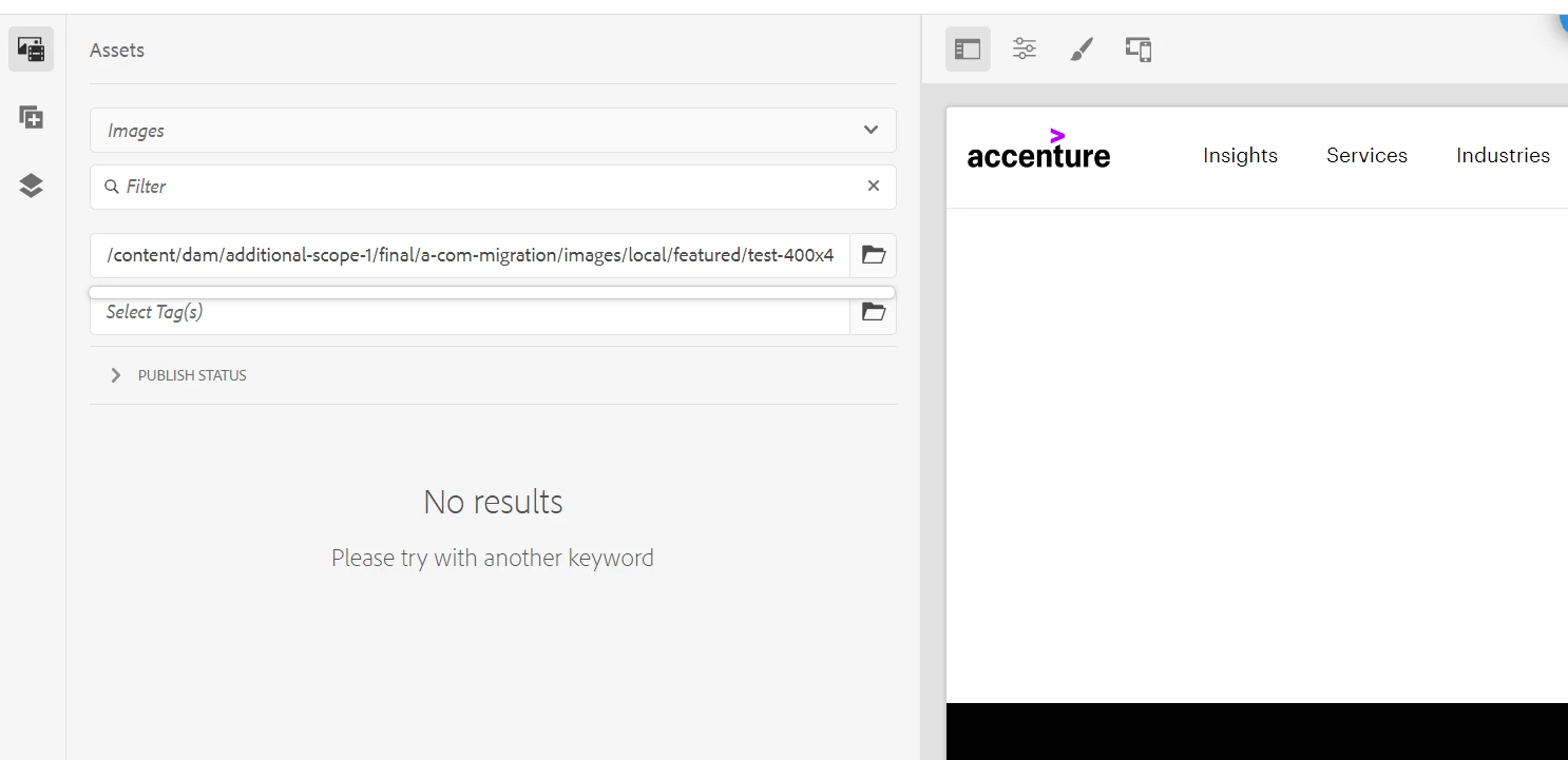 | Current/Experienced Behavior: | Right now, if you enter a direct path to an asset in the "path" of the assert viewer of the authoring site in AEM, the asset is not being selected. Instead, nothing is being returned. You will need to remove the file name part of the path in order to be able to get into the folder where the asset is and then be able to select the asset |