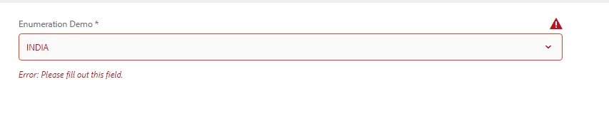 If we keep enumeration Data Type to render as dropdown and enable required checkbox in Content Fragment Model. After we populate dropdown with dropdown items in content fragment, reopening it throws validation error even if dropdown value remains populated.