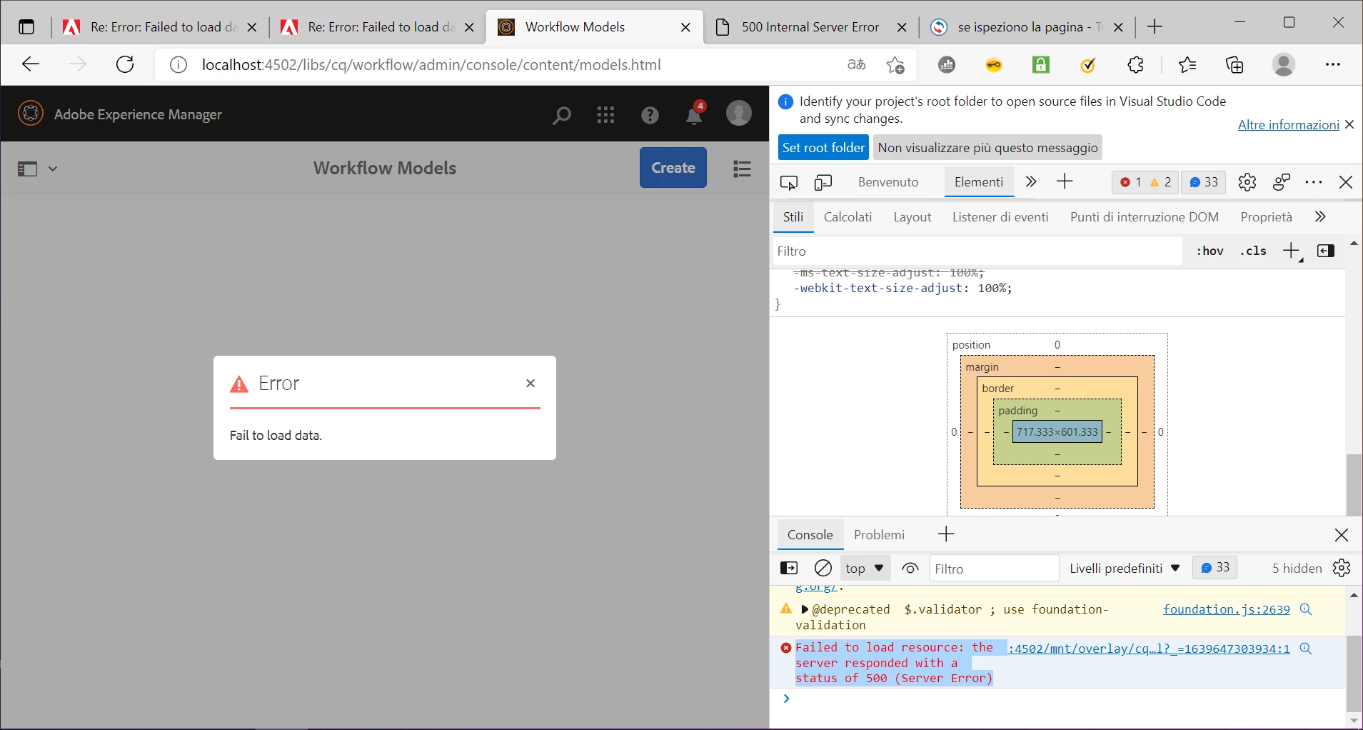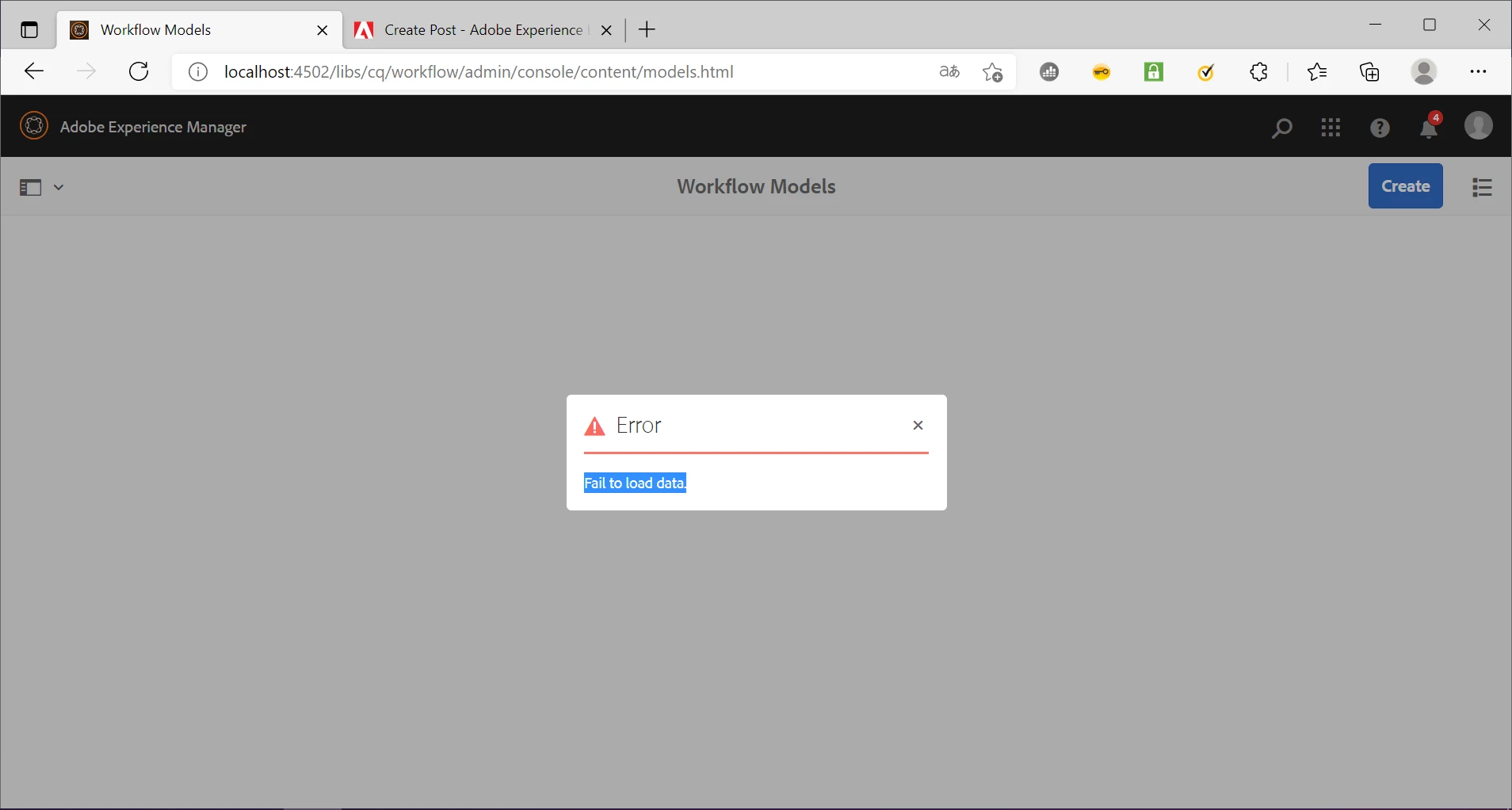 Error: Failed to load data AEM version 6.5.0 - Workflow Models
