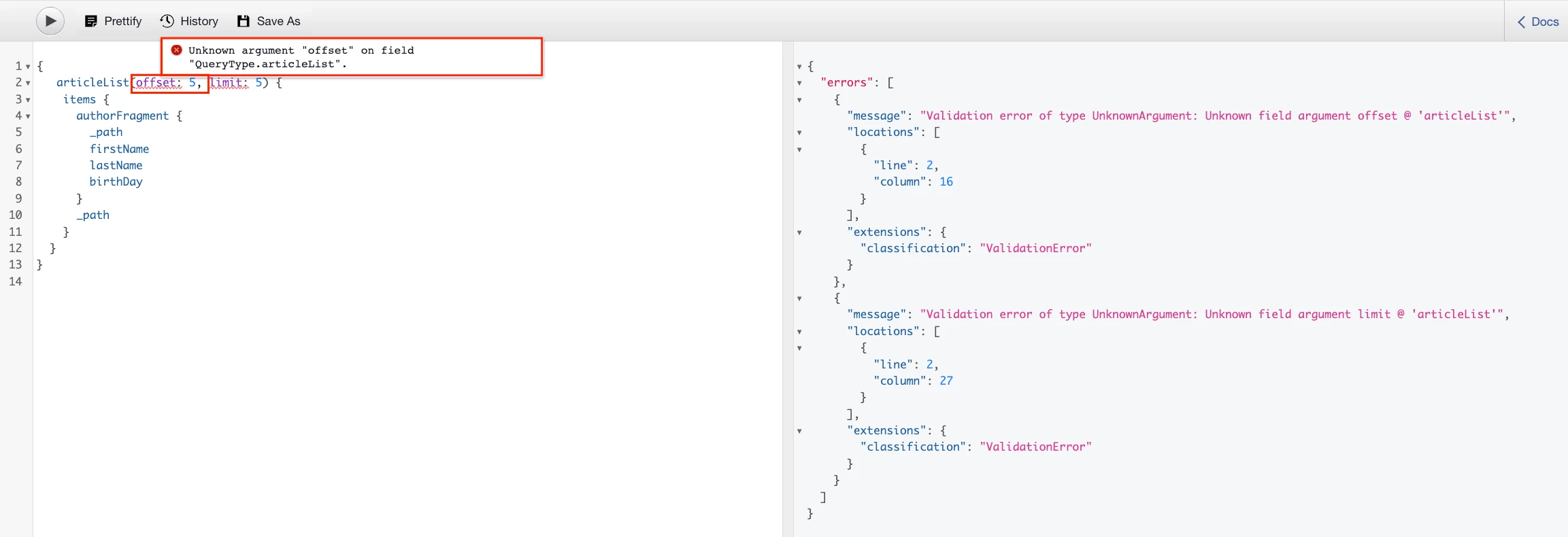 Above documentation is AEM as a Cloud Service version, and there is no feature parity between on premise an cloud version of AEM. Base on AEM as a Cloud Service release notes, offset and limit parameters have been added in the latest AEM as a Cloud Service, as part of prerelesae feature.