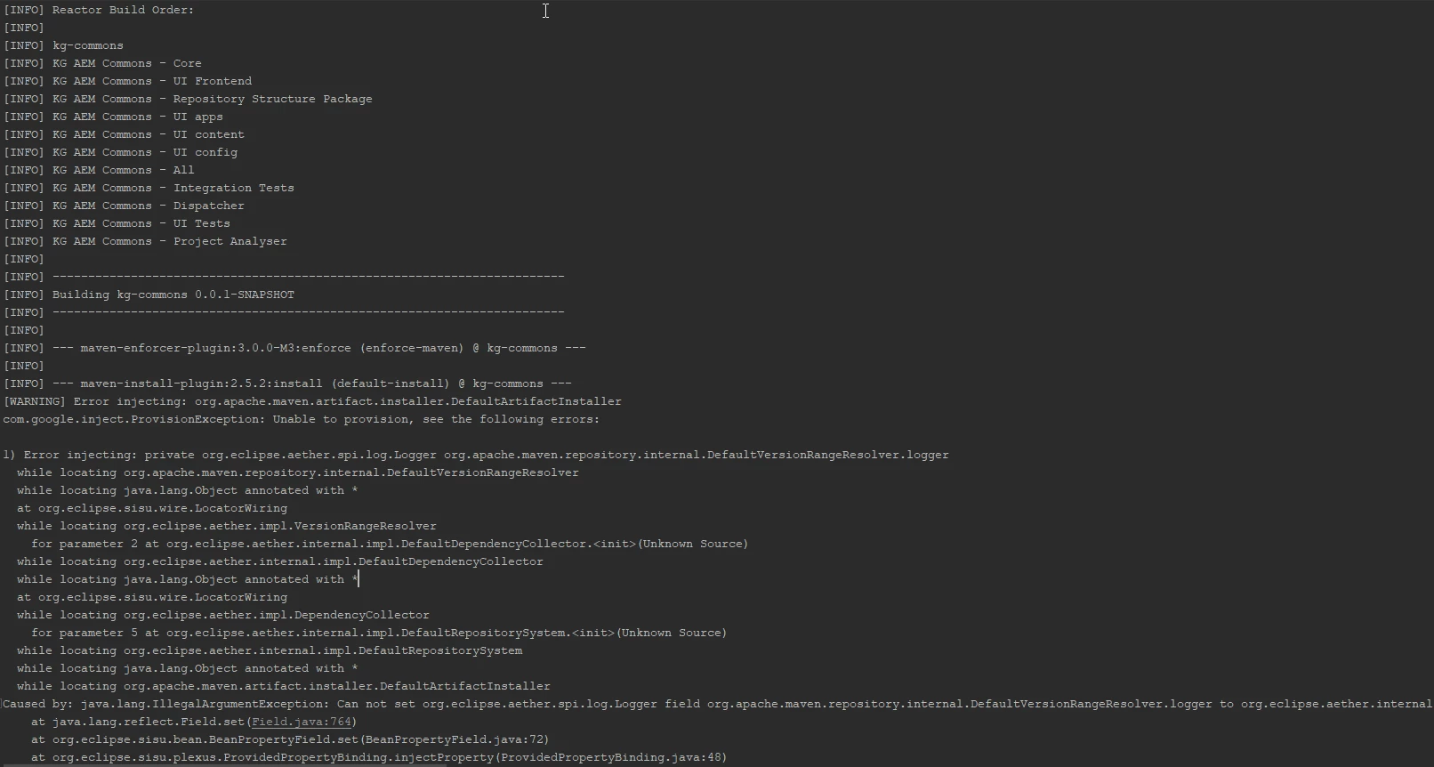1) Error injecting: private org.eclipse.aether.spi.log.Logger org.apache.maven.repository.internal.DefaultVersionRangeResolver.logger