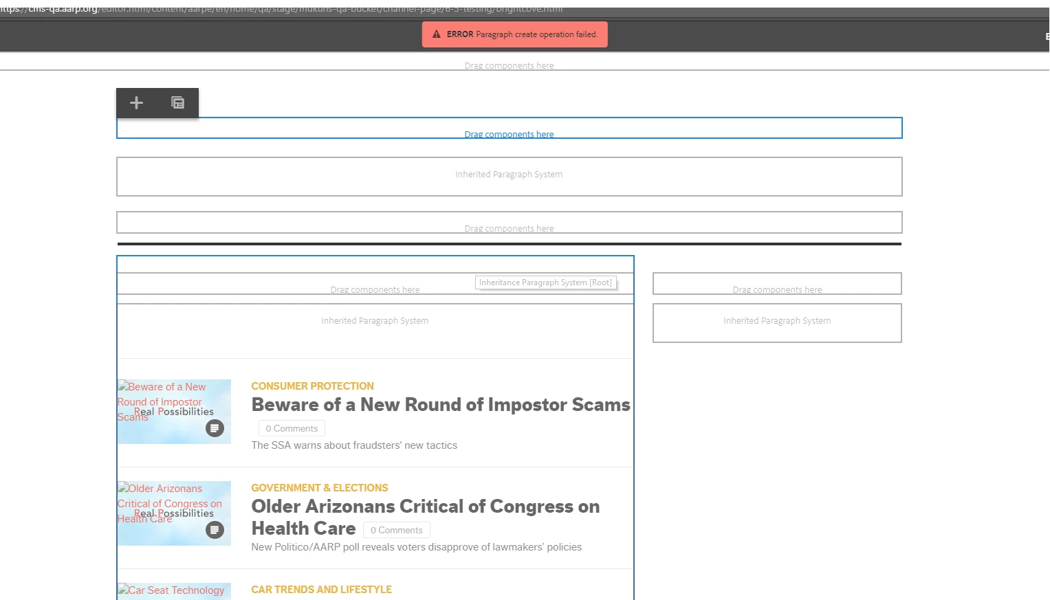 Error: Paragraph Create Operation Failed in AEM 6.3 while adding a component on the page