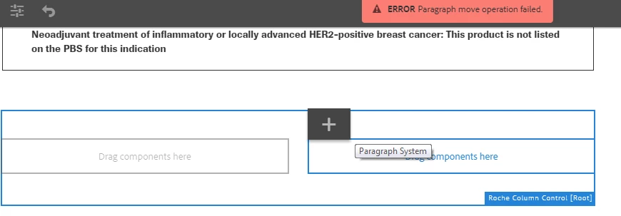 "ERROR Paragraph move operation failed." when clicking on the column control paragraph
