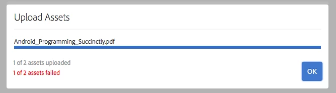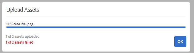 But I've created a user and added to the 'DAM Users' group. With this new user, when I upload an asset, the UI shows an error (tried with different file extensions):