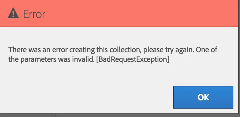 There was an error updating this collection, please try again. One of the parameters was invalid. [BadRequestException]