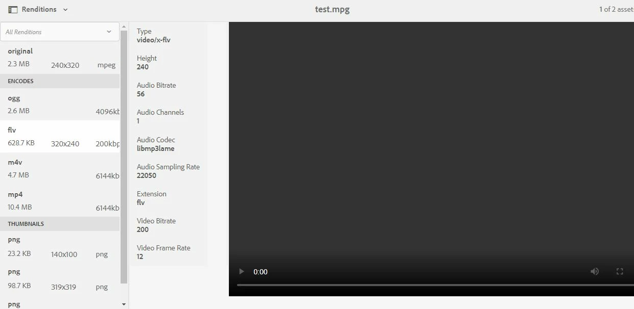 Error While playing mpeg original file in DAM Rendition tab s7config null