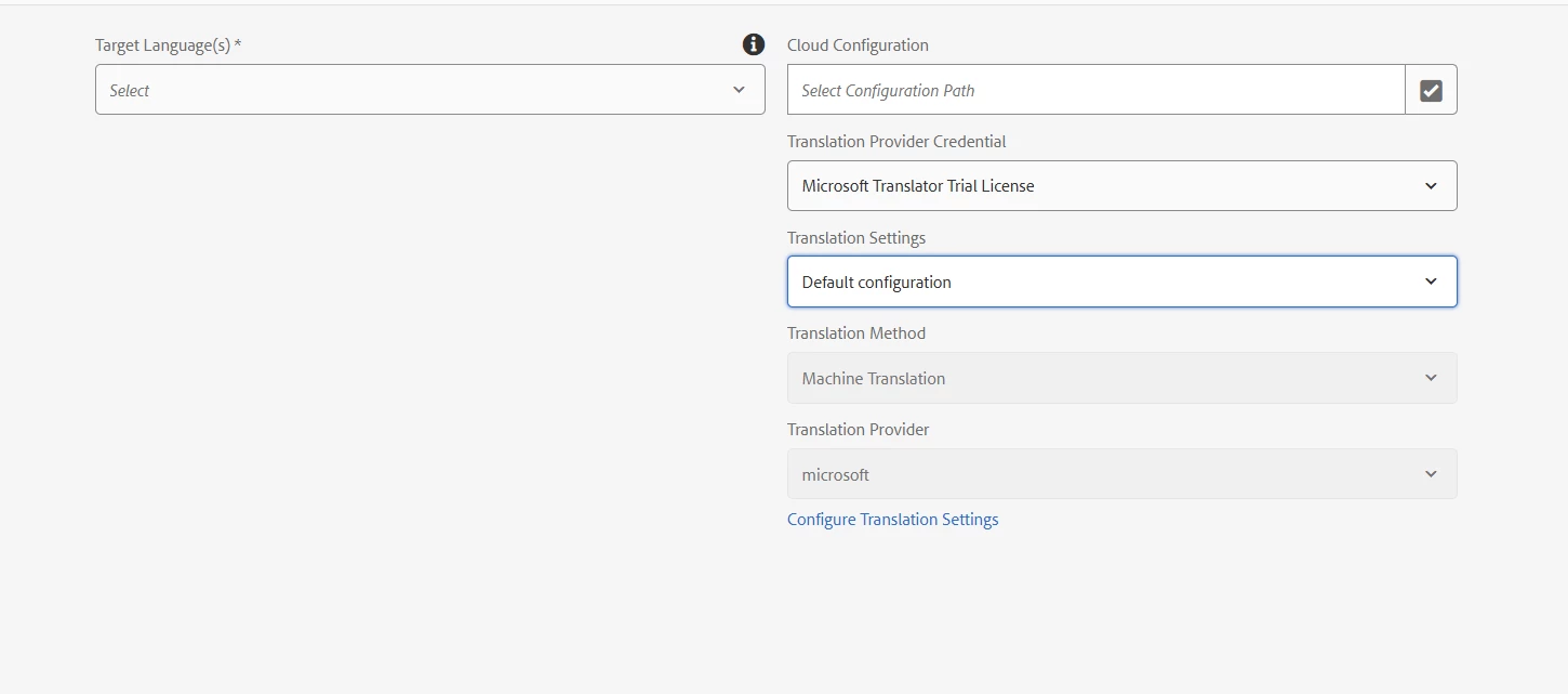 06.10.2025 11:12:32.759 *ERROR* [JobHandler: /var/workflow/instances/server0/2025-09-20_2/sync_translation_job_11:/content/projects/my_tidingz_translation0/my_tidingz_translation/jcr:content/dashboard/gadgets/translationjob1] com.adobe.cq.wcm.translation.impl.CQPageMachineTranslator Error while translating property com.adobe.granite.translation.api.TranslationException: Error Code: TRANSLATION_FAILED. Message: Error Code: REQUEST_FAILED. Message: Access token creation failed for unknown reason. Maybe bad credentials? at com.adobe.granite.translation.connector.msft.core.impl.MicrosoftTranslationServiceImpl.getTranslatedTextForArray(MicrosoftTranslationServiceImpl.java:549) at com.adobe.granite.translation.connector.msft.core.impl.MicrosoftTranslationServiceImpl.translateArray(MicrosoftTranslationServiceImpl.java:522) at com.adobe.cq.wcm.translation.impl.CQPageMachineTranslator.translatePropertyList(CQPageMachineTranslator.java:156) at com.adobe.cq.wcm.translation.impl.CQPageMachineTranslator.saveCacheQueue(CQPageMachineTranslator.java:138) at com.adobe.cq.wcm.translation.impl.CQPageMachineTranslator.translateResourceList(CQPageMachineTranslator.java:109) at com.adobe.cq.wcm.translation.impl.TranslationObjectImpl.startMachineTranslation(TranslationObjectImpl.java:630) at com.adobe.cq.wcm.translation.impl.TranslationObjectImpl.translateNow(TranslationObjectImpl.java:459) at com.adobe.cq.wcm.translation.impl.TranslationPodImpl.startTranslation(TranslationPodImpl.java:1335) at com.adobe.cq.wcm.translation.impl.TranslationPodImpl.syncTranslation(TranslationPodImpl.java:2561) at com.adobe.cq.wcm.translation.impl.process.SyncTranslationProcess.syncTranslationJob(SyncTranslationProcess.java:170) at com.adobe.cq.wcm.translation.impl.process.SyncTranslationProcess.execute(SyncTranslationProcess.java:130) at com.day.cq.workflow.compatibility.CQWorkflowProcessRunner.execute(CQWorkflowProcessRunner.java:93) at com.adobe.granite.workflow.core.job.HandlerBase.executeProcess(HandlerBase.java:194) at com.adobe.granite.workflow.core.job.JobHandler.process(JobHandler.java:271) at org.apache.sling.event.impl.jobs.JobConsumerManager$JobConsumerWrapper.process(JobConsumerManager.java:502) at org.apache.sling.event.impl.jobs.queues.JobQueueImpl.startJob(JobQueueImpl.java:351) at org.apache.sling.event.impl.jobs.queues.JobQueueImpl.access$100(JobQueueImpl.java:60) at org.apache.sling.event.impl.jobs.queues.JobQueueImpl$1.run(JobQueueImpl.java:287) at java.base/java.util.concurrent.ThreadPoolExecutor.runWorker(ThreadPoolExecutor.java:1128) at java.base/java.util.concurrent.ThreadPoolExecutor$Worker.run(ThreadPoolExecutor.java:628) at java.base/java.lang.Thread.run(Thread.java:834)