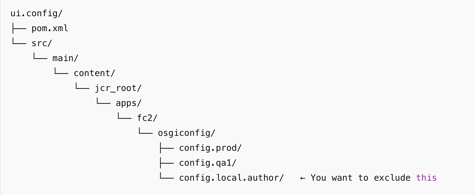 <exclude pattern="/apps/fc2/osgiconfig/config.local.author" />