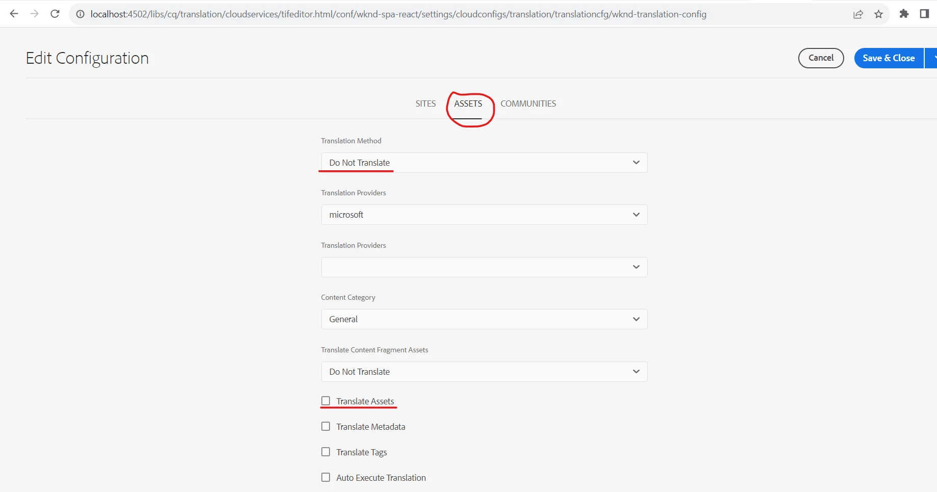 We have tried Exclude Children option also in Translation Project, but no luck.