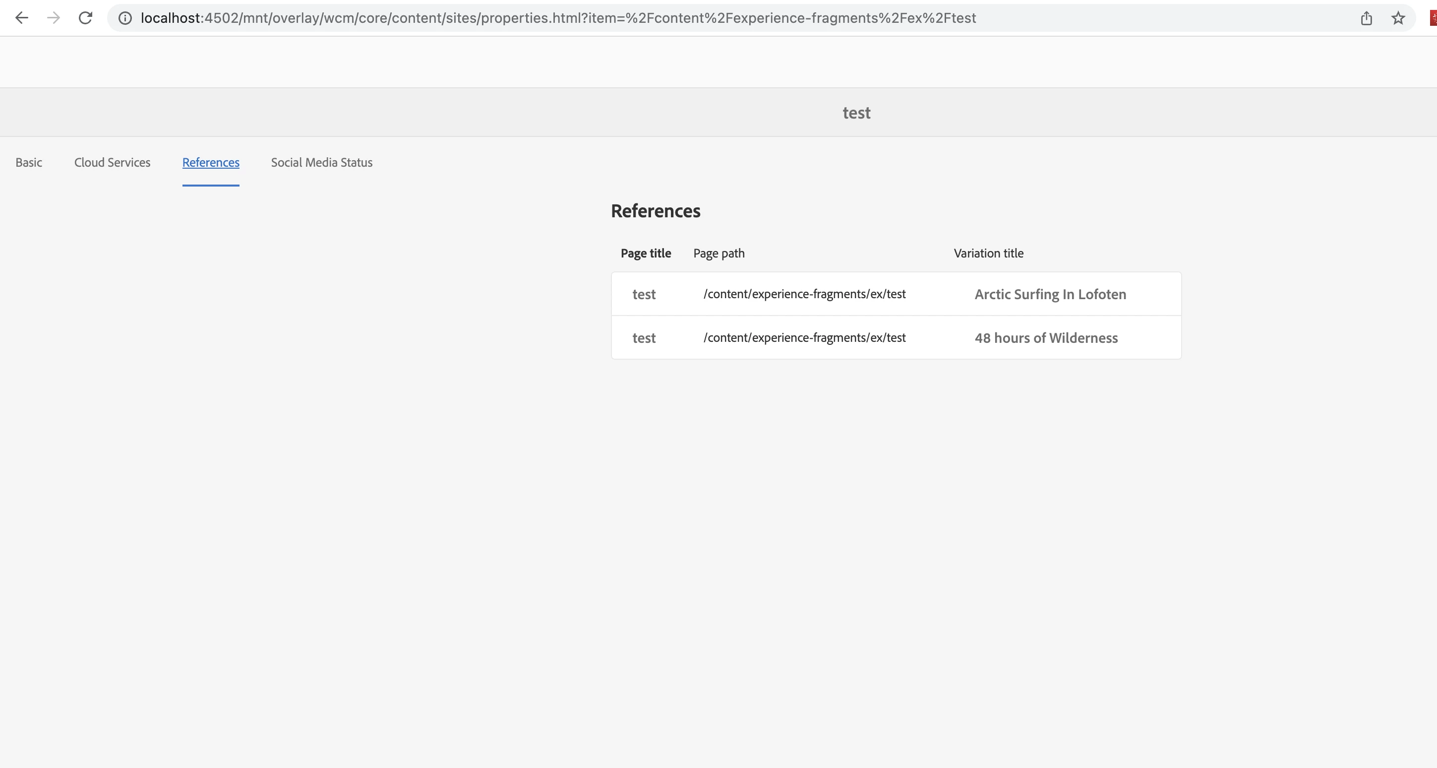 Experience Fragments: List of pages that XF is used on